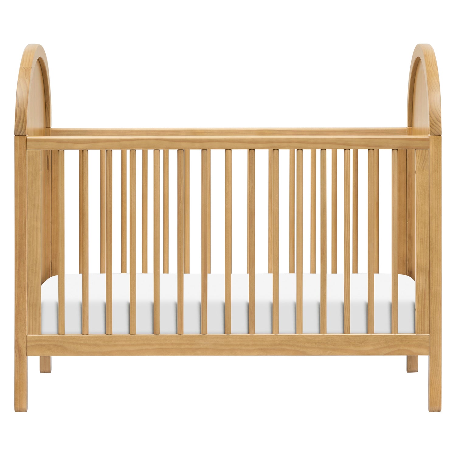 The Bondi 3-in-1 Convertible Crib celebrates boho-inspired design and natural materials with its warm wood tone, playfully arched side panels, and curved feet. The Bondi is designed to grow with your babe using an included toddler bed conversion rail and is screened for harmful chemical emissions to ensure it meets GREENGUARD GOLD Certification.