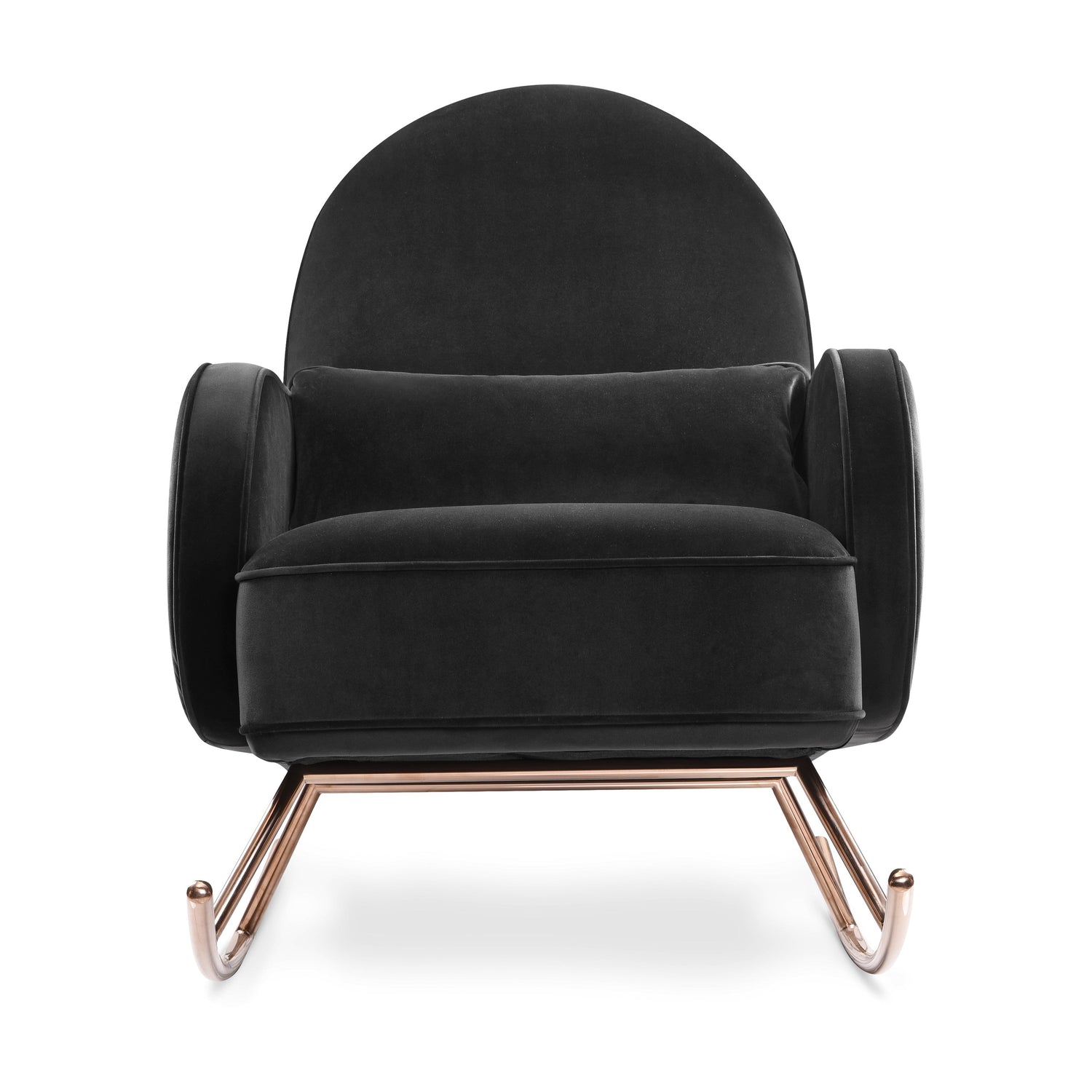 - MODERN LUXE: The compass rocker is a luxurious take on the nursery rocker with a rounded voluminous back and armrests that sit upon elegant rose gold plated stainless steel legs