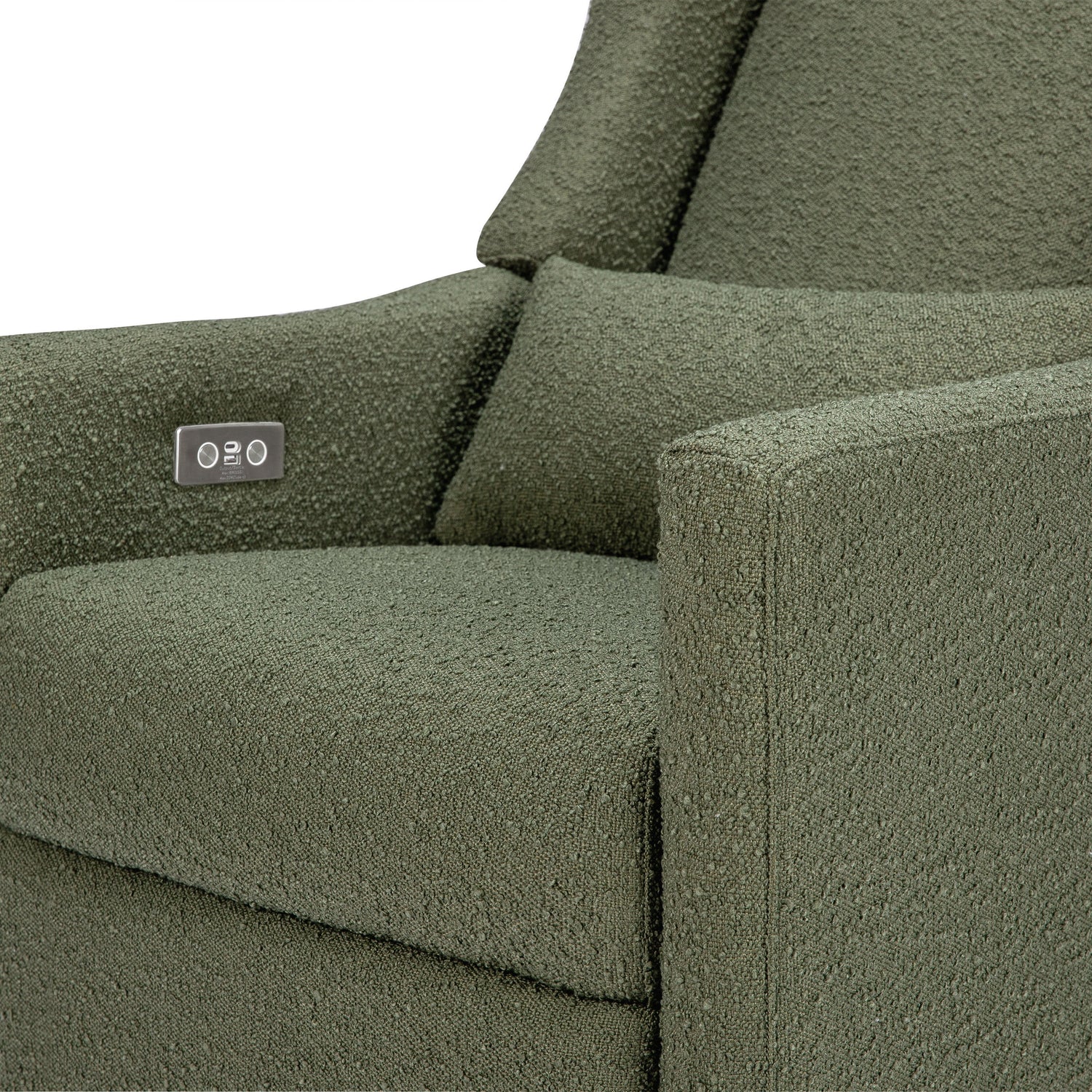 The Kiwi Glider Recliner takes the phrase “rest and recharge” to a whole new level with its built-in USB port, smooth swivel motion, and effortless back and forth gliding motion. Lean back and kick up your feet at the touch of a button with this recliner’s quiet electronic control button. It's a stylish choice with a modern wingback design but also a more sustainable choice for your home. Upholstered by hand in our eco-performance fabric, that is stain resistant, water repellent, and made with at least 30% recycled yarn.