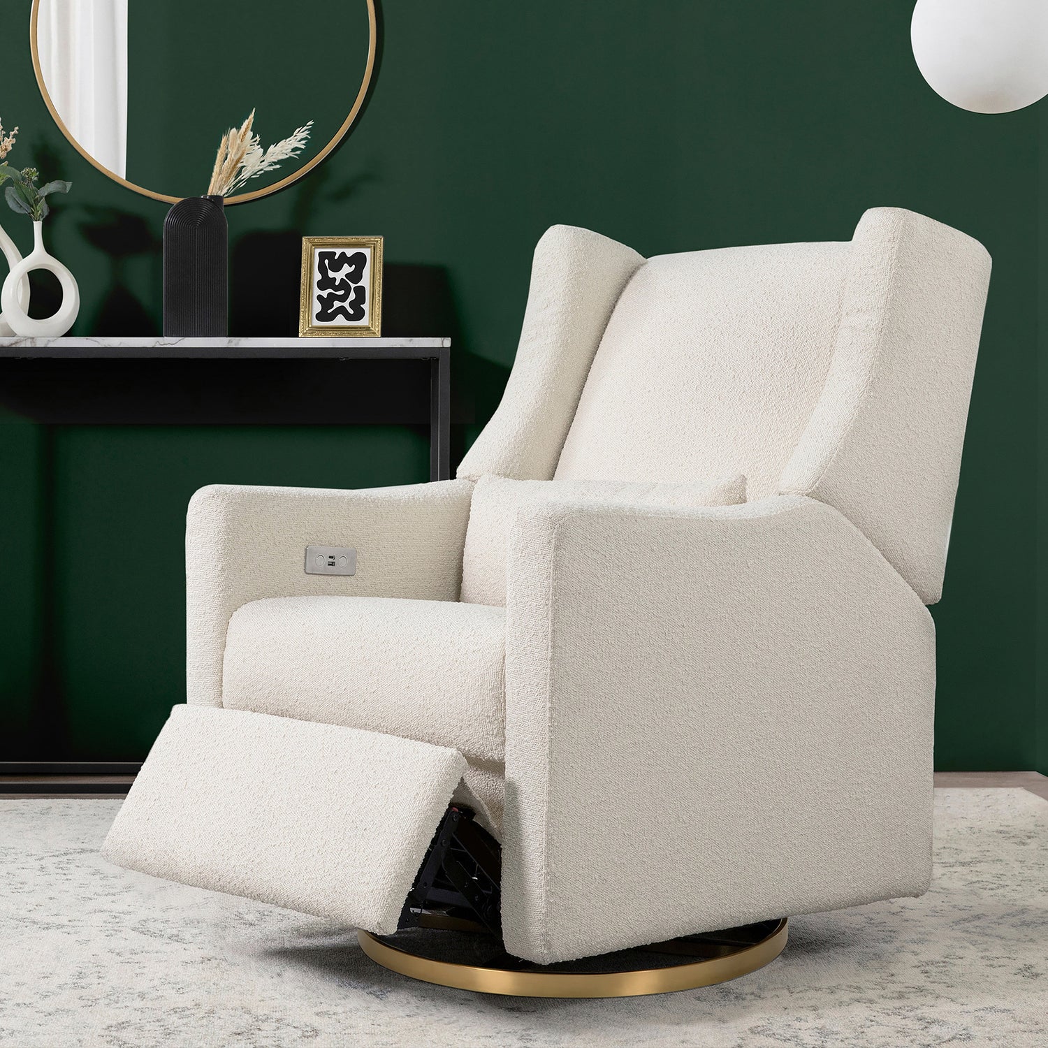Kiwi Glider Recliner w/ Electronic Control and USB in Ivory Boucle w/Gold Base