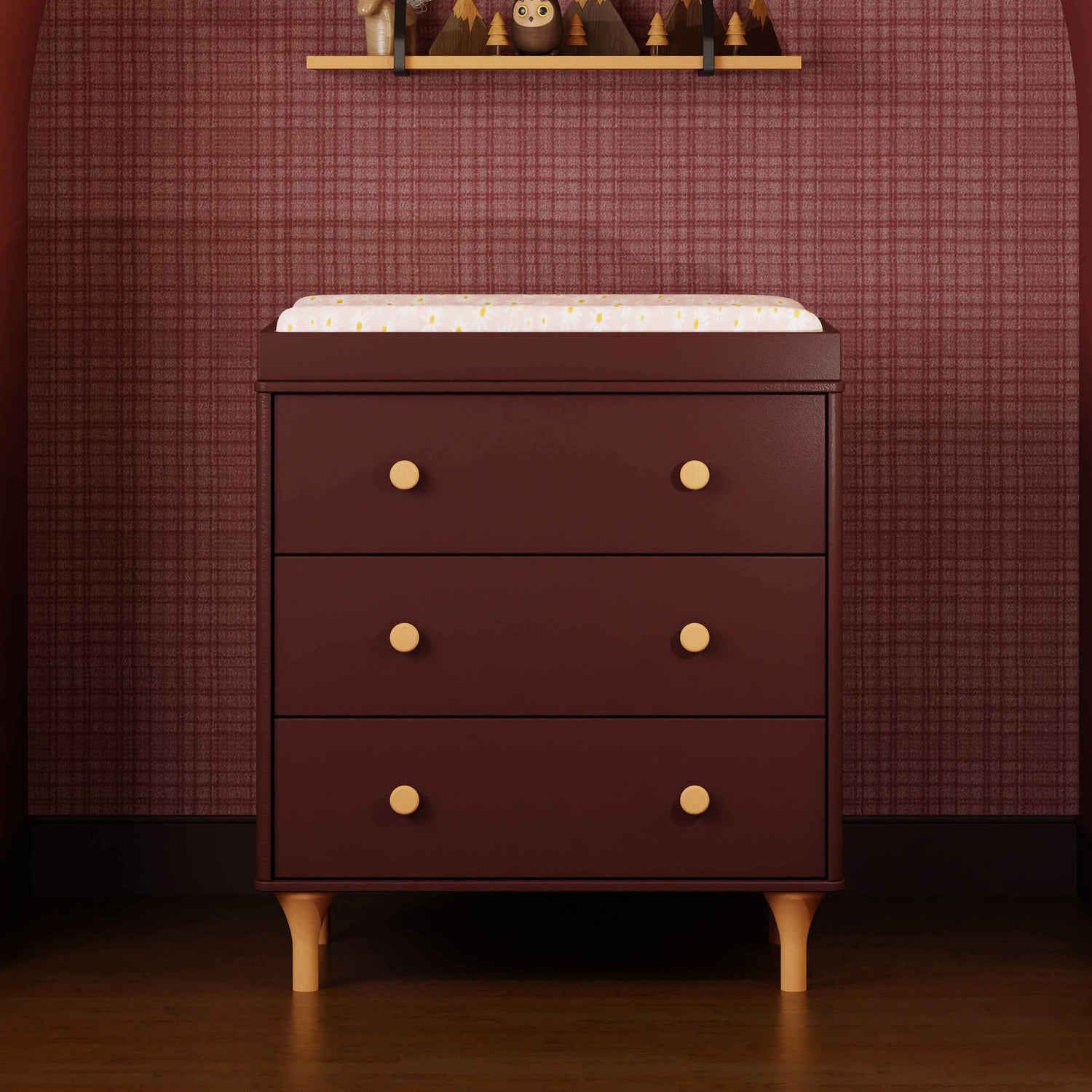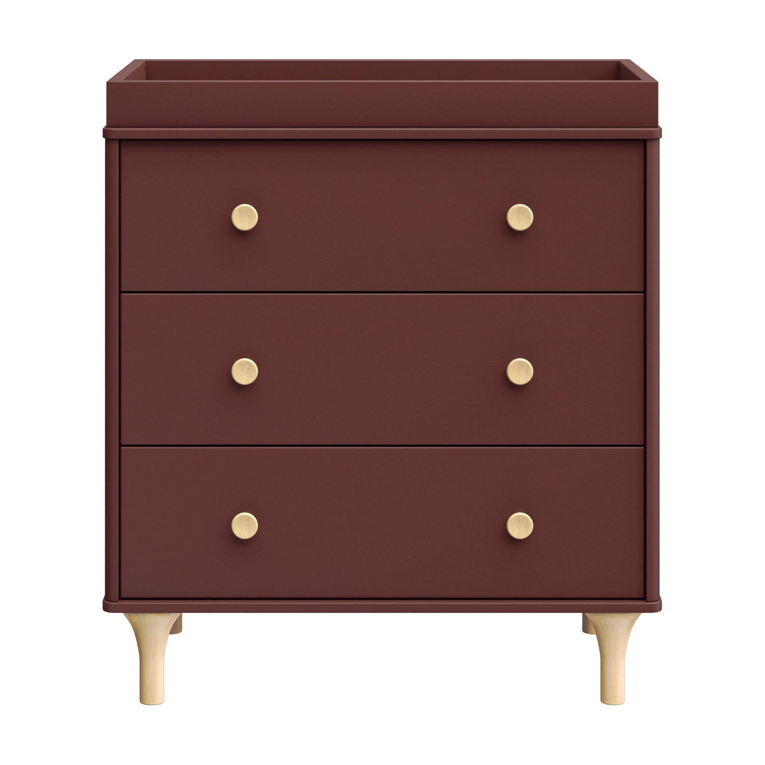 Enjoy the playful modern design of the Lolly 3-Drawer Changer Dresser! With natural curves and delicate natural feet that compliments the Lolly 3-in-1 Convertible Crib. Designed especially for the nursery with an included removable changing tray, smooth-glide drawers, hidden hardware, and included anti-tip kit.