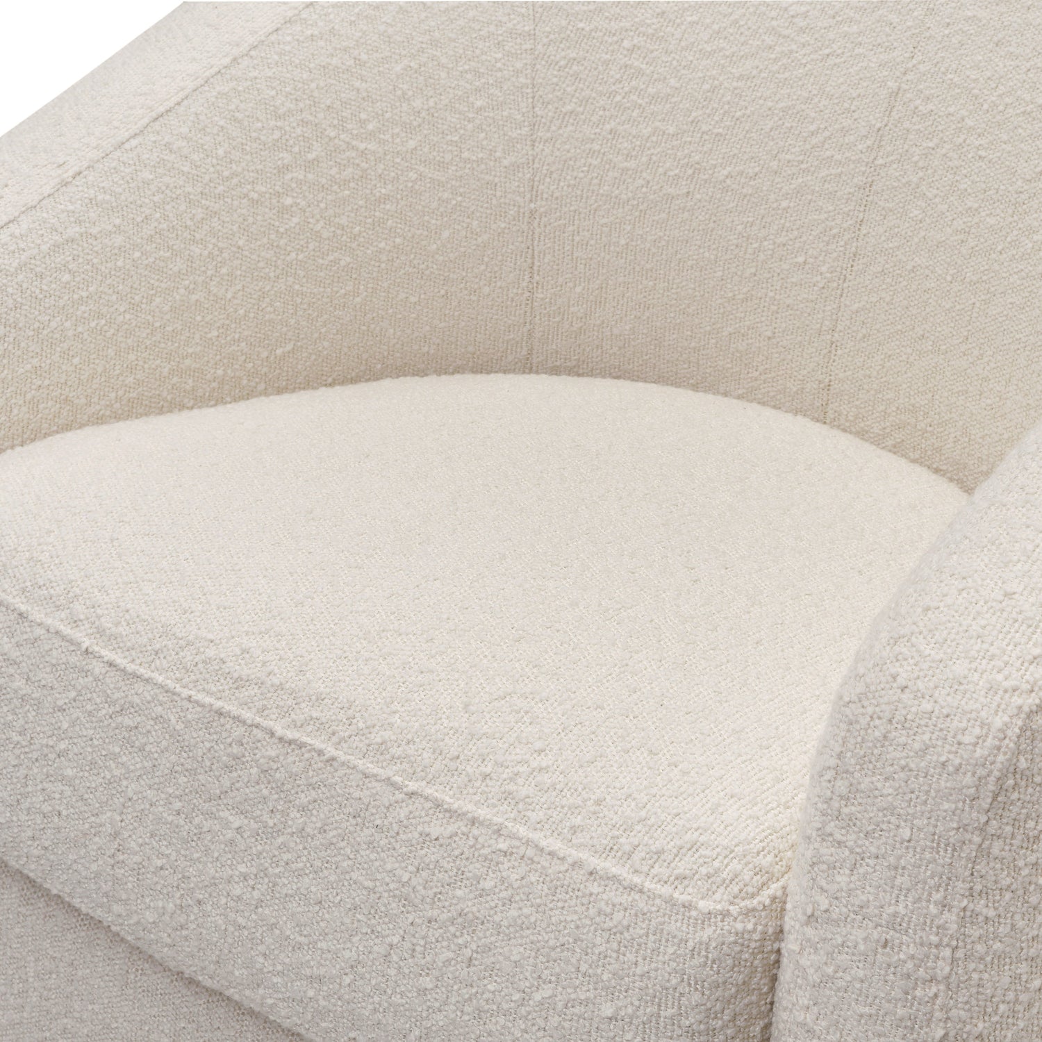 Snuggle in and rock baby to sweet slumber with the sublime comfort of the Madison Swivel Glider. This soft and cozy glider's rounded back and spacious seat make for heavenly cuddling and story time. The Madison Glider’s metal swivel mechanism base allows you to turn and glide a full 360°; easily turn to talk with your family while staying put with baby. Upholstered by hand in ultra-soft water-repellant and stain-resistant microsuede, the classic mid-century curves of the Madison Swivel Glider will add beautiful comfort during the nursery years and beyond.