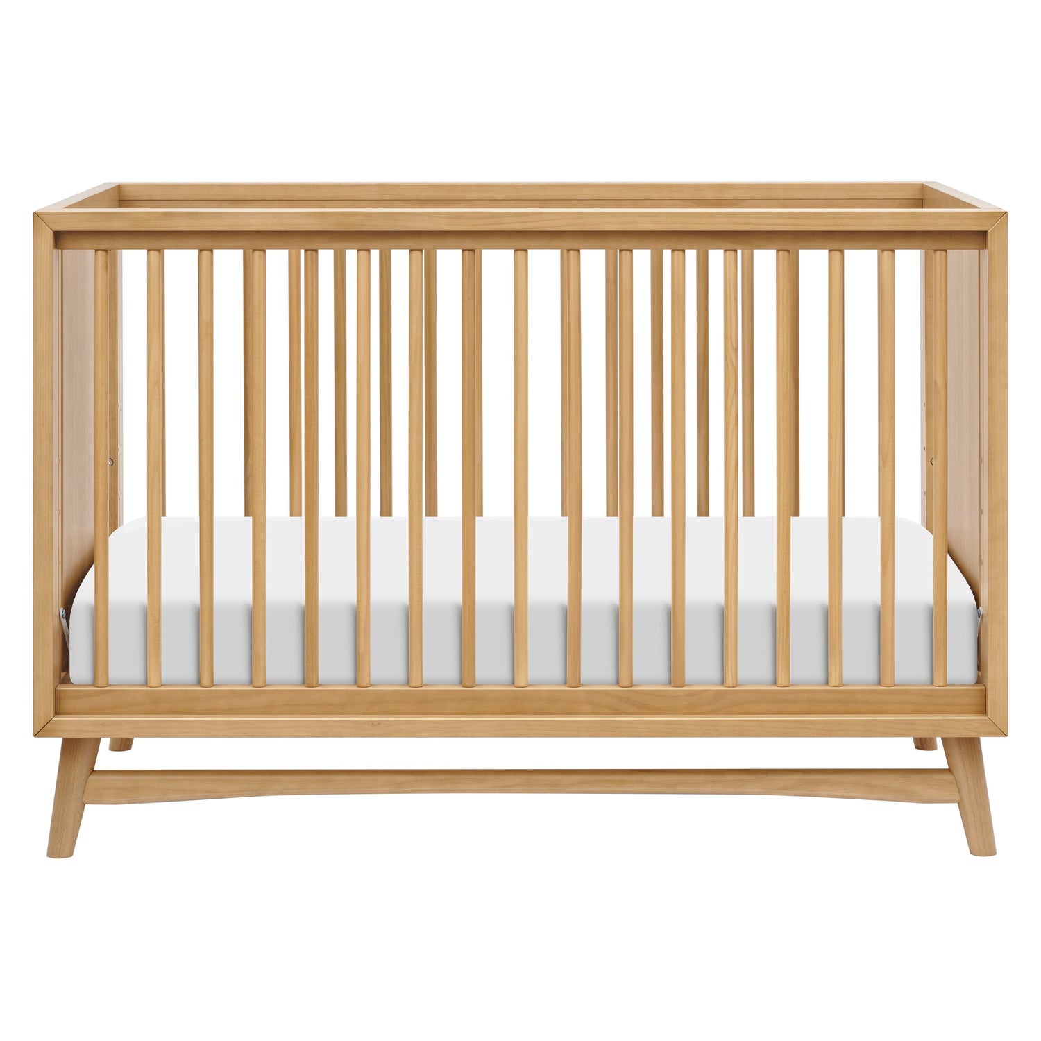 - REFINED MID-CENTURY MODERN STYLE: Featuring a modern, clean silhouette and classic rounded spindles. Flared tapered legs add a playful touch to this sophisticated crib.
