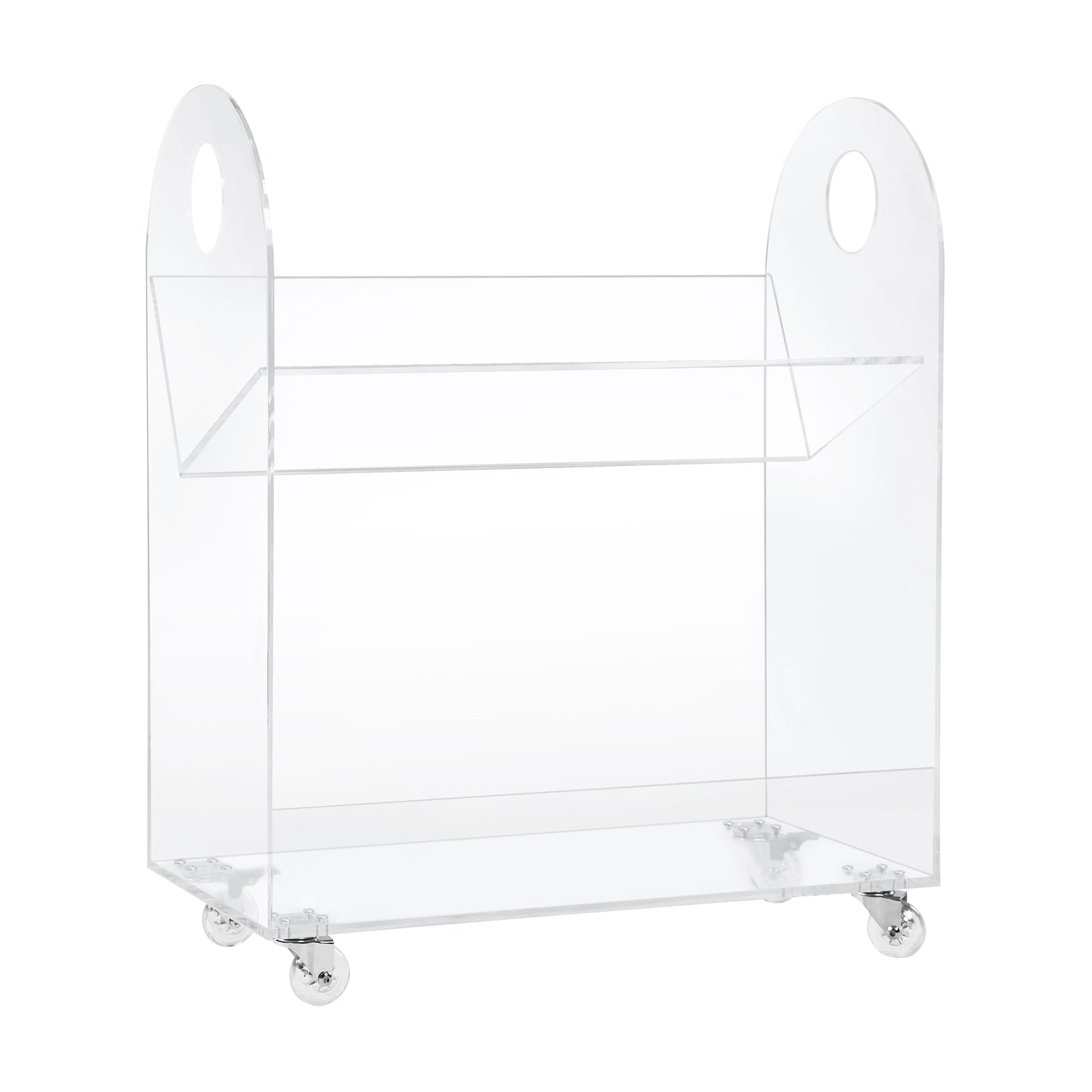 - Made with 100% clear recyclable acrylic lucite and clear wheels with locking casters (on back wheels) for safety