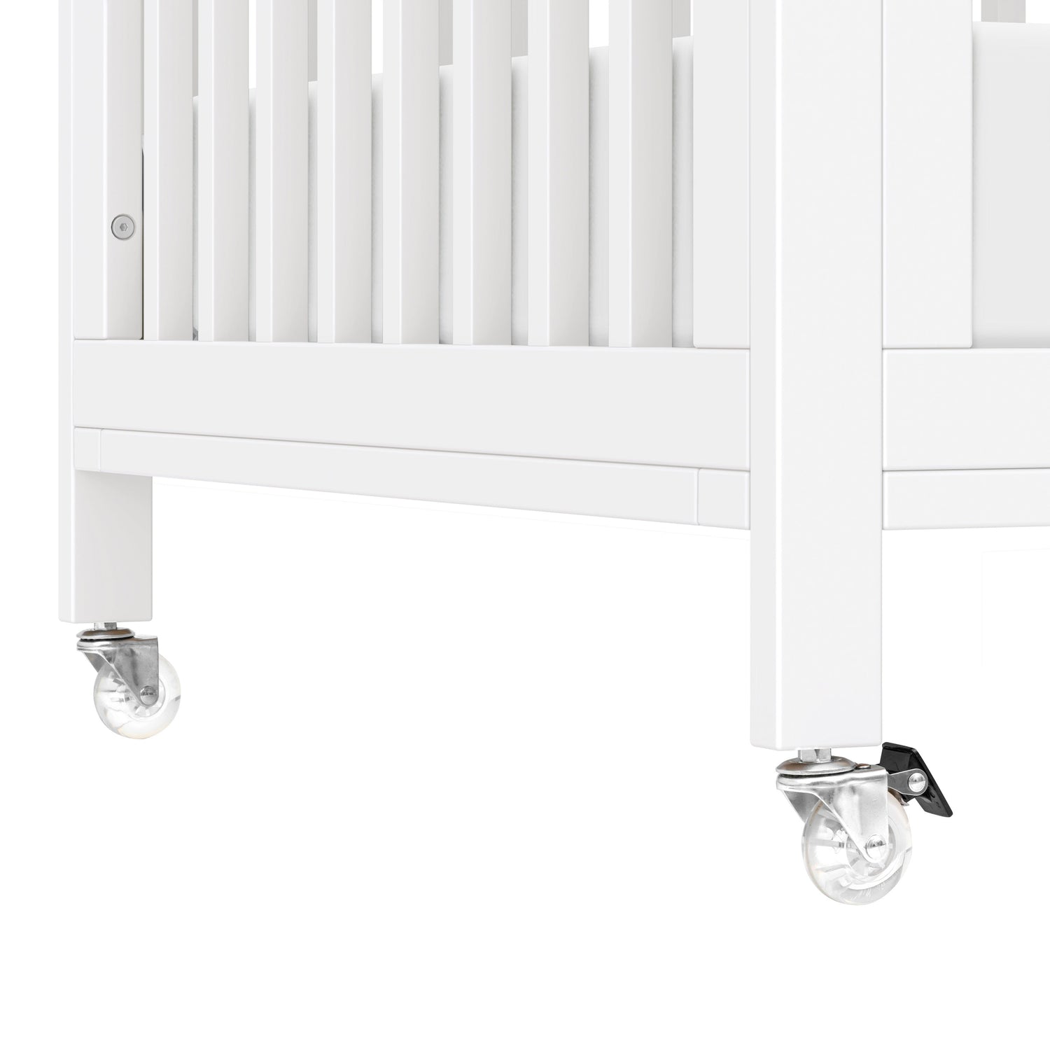 - PORTABLE & ADJUSTABLE HEIGHT: Glides easily from room to room on removable locking caster wheels in each stage. The standard crib features 3 mattress heights to adjust as your baby grows and develops.