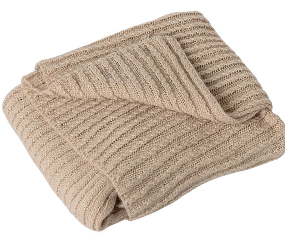 A soft and cosy blanket for the little ones. The blanket comes with a beautiful knitted pattern on each side. The measurement is 75 x 95 cm.