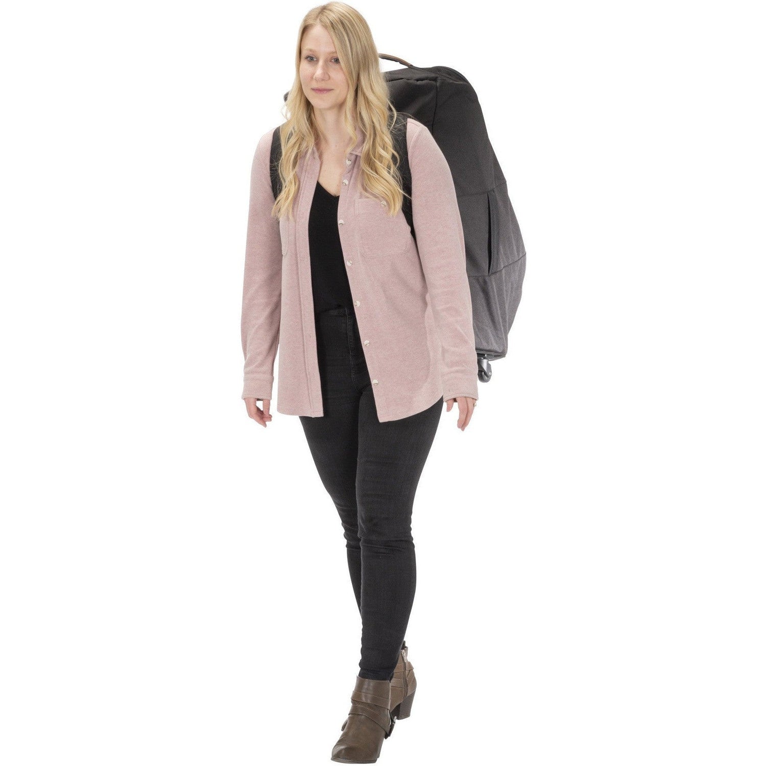 Travel with ease on every adventure with the Maxi-Cosi Wheeled Car Seat Travel Pack, which fits Maxi-Cosi convertible car seats (except for Emme 360™). Its carry handle and convenient roller wheels make it easy to tote around the airport, or anywhere you’re going. With its comfortable, padded straps, you can also wear it on your shoulders as a backpack. The travel bag stays protected from the elements with its woven polyester fabric and nylon webbing. The easy-to-use zipper fully opens to quickly load the car seat into the bag.