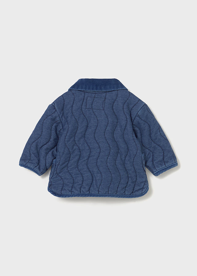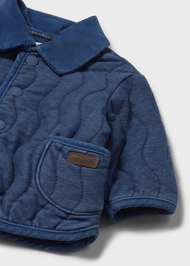 Long sleeved Coat for newborn baby boy. Snap button fastening on the front. Comfortable denim fabric, perfect for everyday outfits. Functional front pockets. The item has a unisex design which offers great versatility through its neutral color tones and shape.