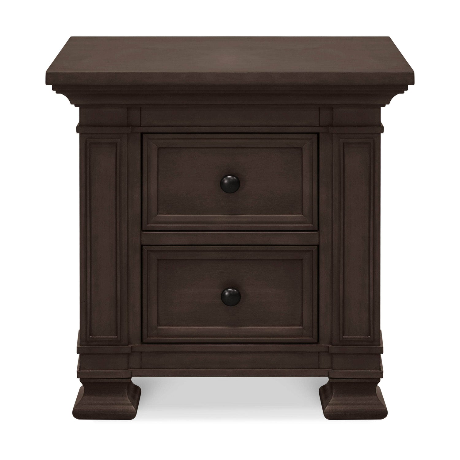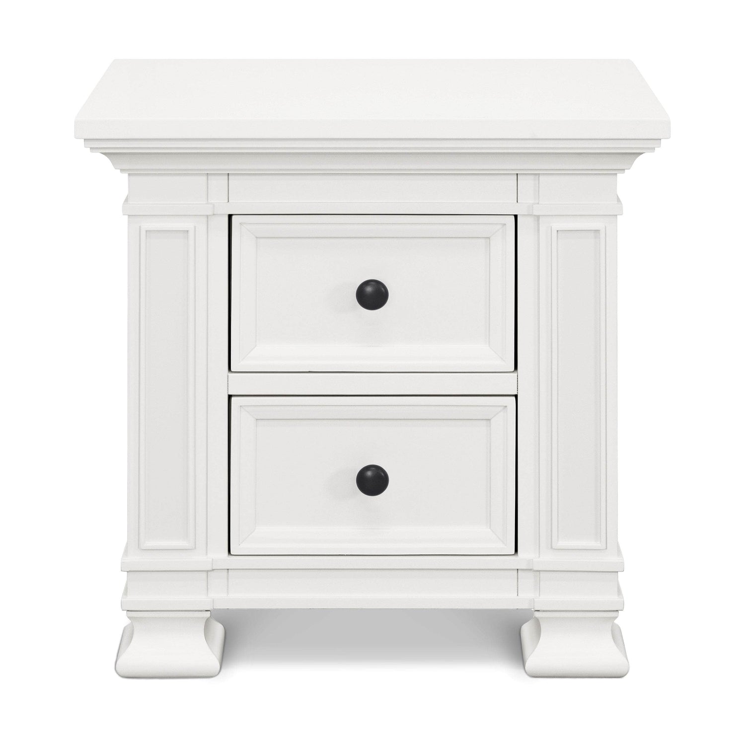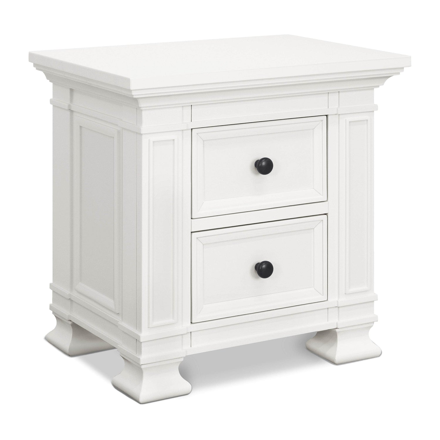 With two drawers and self-closing and ball bearing drawer glides, the Classic Night Stand is a perfect piece to add to your nursery. Timeless details come together with square bun feet, molding and metal knobs.