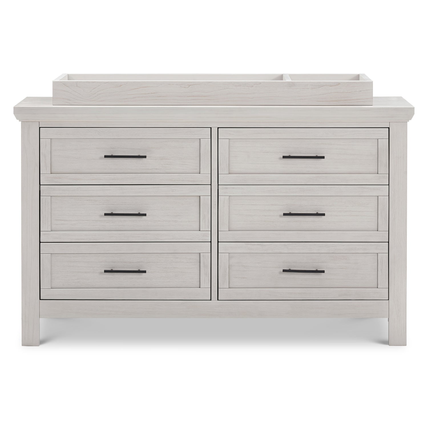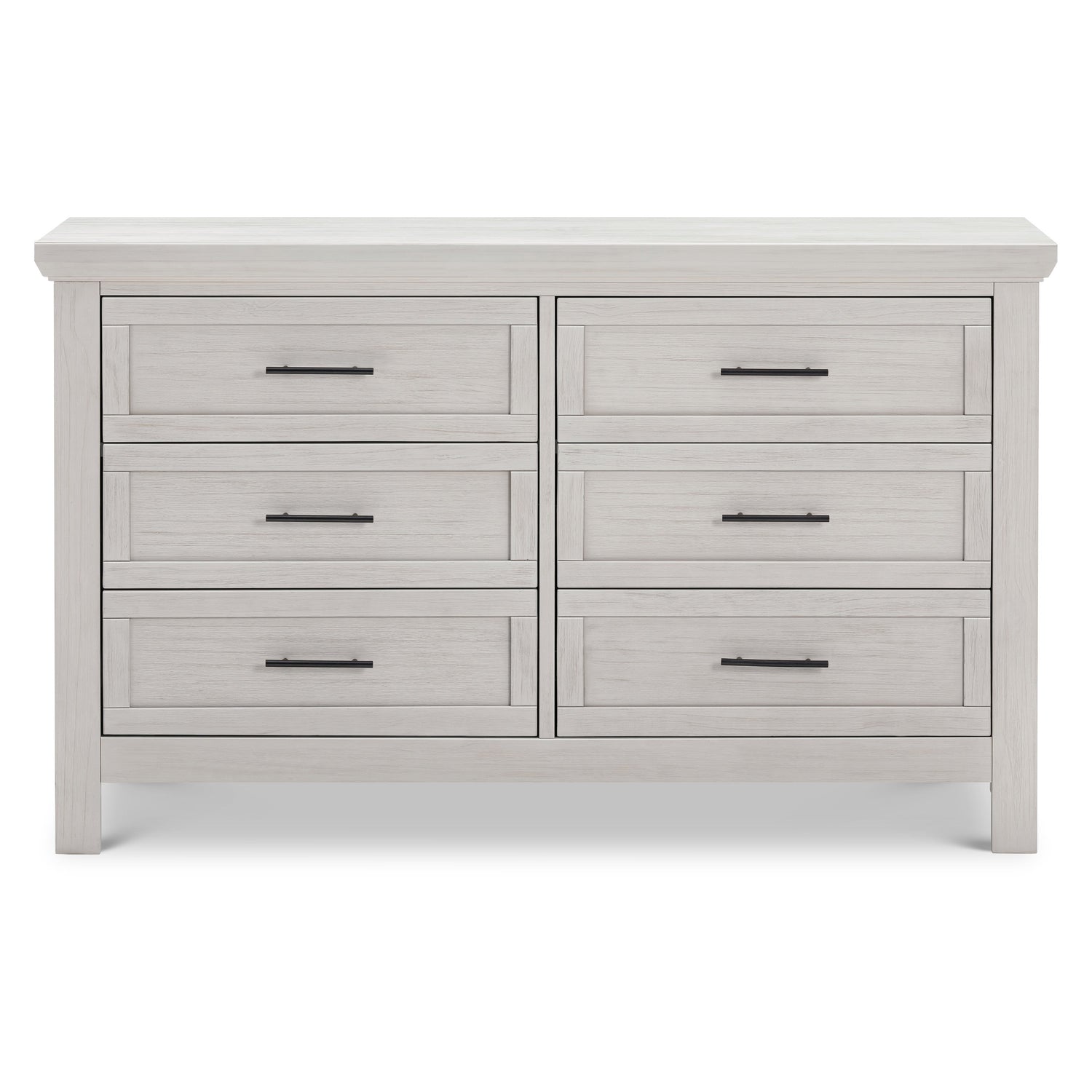 The Emory Farmhouse 6-Drawer Dresser is the perfect companion to the Emory Farmhouse 4-in-1 Convertible Crib. With matching thoughtful X-brace details and a beautifully textured finish inspired by hand-crafted barn doors, the double dresser is the perfect accent piece to complete your rustic nursery.
