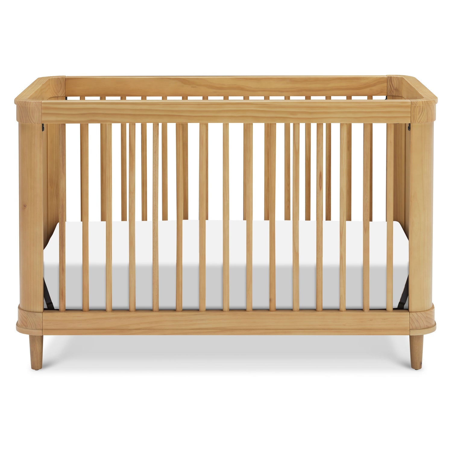 Ease into contemporary style with the Marin 3-in-1 Convertible Crib. Featuring a gently curved silhouette with solid rounded cane side panels, the Marin is an effortlessly transitional piece for the home. Crib converts to a toddler bed and daybed, and fits any standard full-size crib mattress.