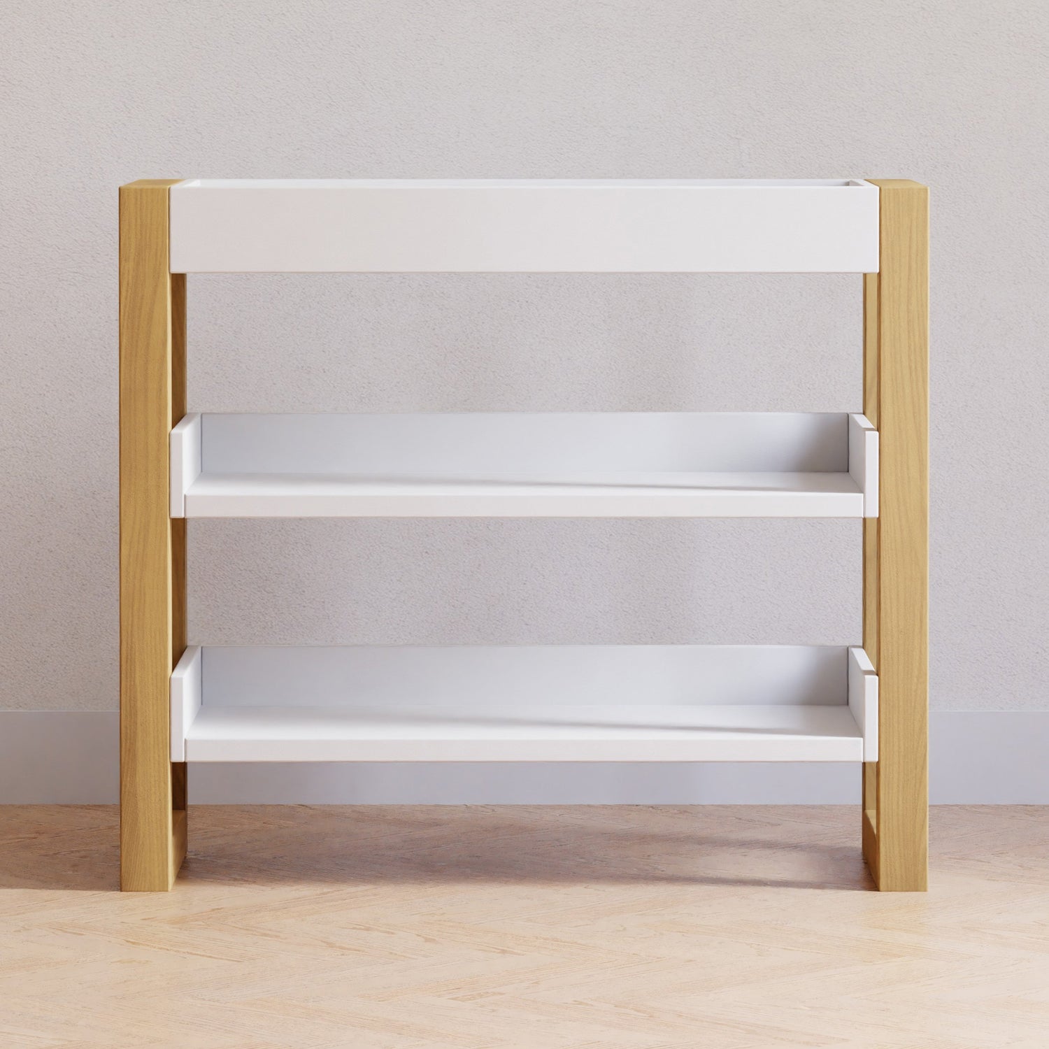 With clean lines and natural wood grain, the Nantucket Changing Table has a modern appeal of the classic coastal design that pairs perfectly with your Nantucket Crib. It features two spacious, open shelves to keep all your baby’s diaper changing needs within easy reach for convenient changings.