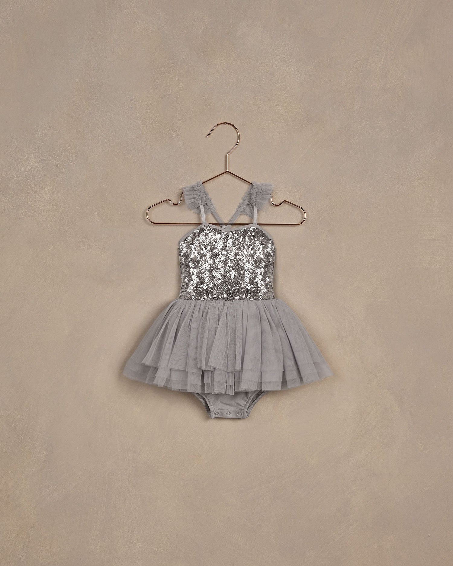 Made for your little ballerina, the clementine tutu features a shimmery soft leotard and a full tiered tulle skirt. Adorned in faceted sequins and adjustable ruffle shoulder straps. Up to size 4y has Crotch snaps.