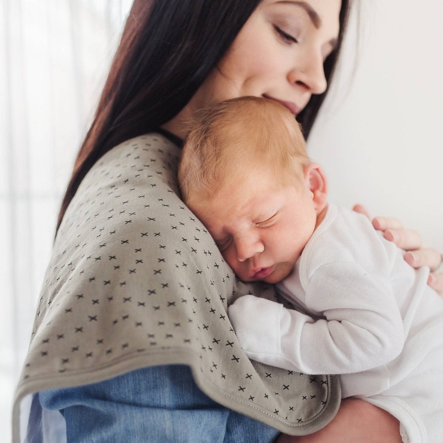 - Our burp cloths are designed with baby’s comfort in mind. That’s why we created them with 100% ultra-soft cotton layers on the front (patterned) and back (plain white). You can feel confident that baby will feel cozy against your shoulder while burping.