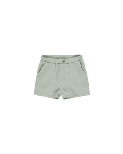 The perfect everyday short made from our soft woven cotton. Designed with a gathered elastic waistband, faux fly and button, and front and back pockets.