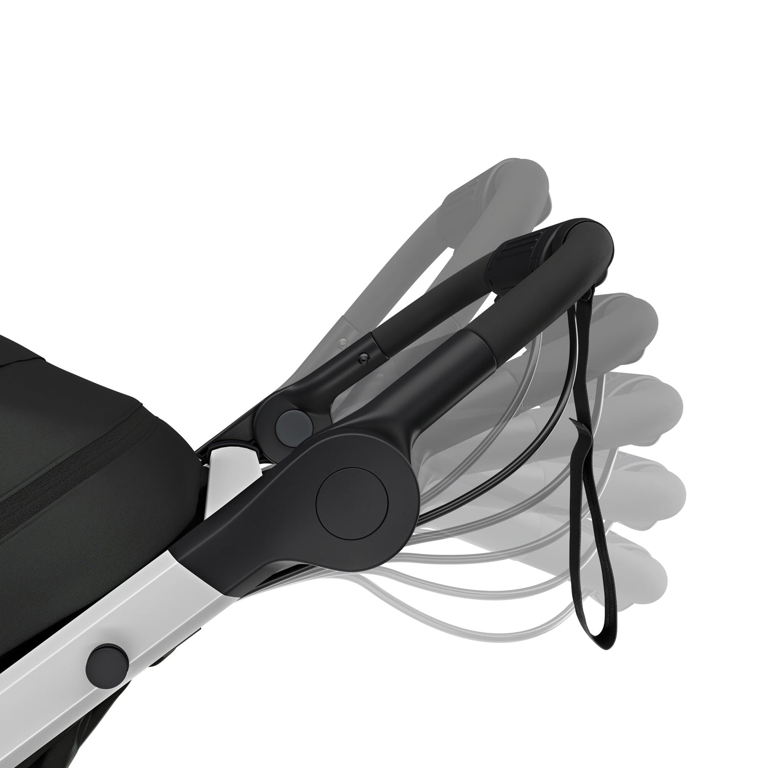 - Ergonomic, adjustable handlebar for maximum parent comfort