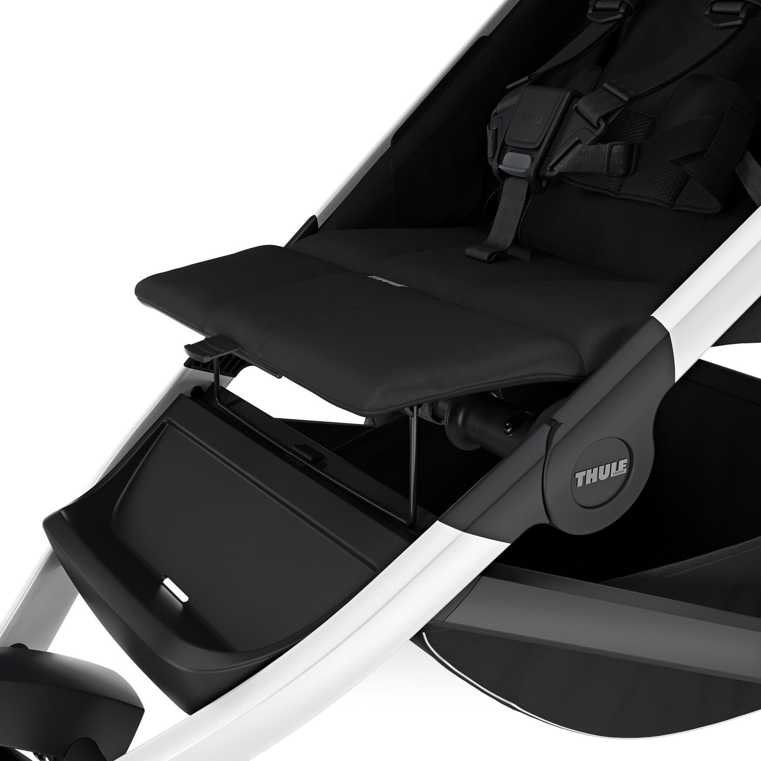 Thule Glide 3 is specifically made for running, thanks to its aerodynamic, lightweight design with large 18” rear wheels, fixed 16” front wheel, and room for your kick stride. You get speed with the fixed front wheel and feel safe knowing you can stop at any time with the integrated handbrake. Enjoy added space for long strides with the updated parking brake. Be confident knowing your child is comfortable with increased canopy coverage, enhanced ventilation, and a leg rest for longer runs. The new magnetic buckle ensures easy in and out, making safety a breeze.