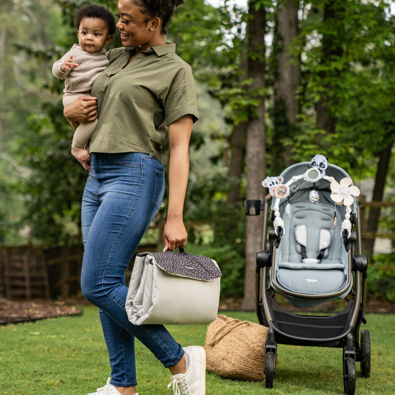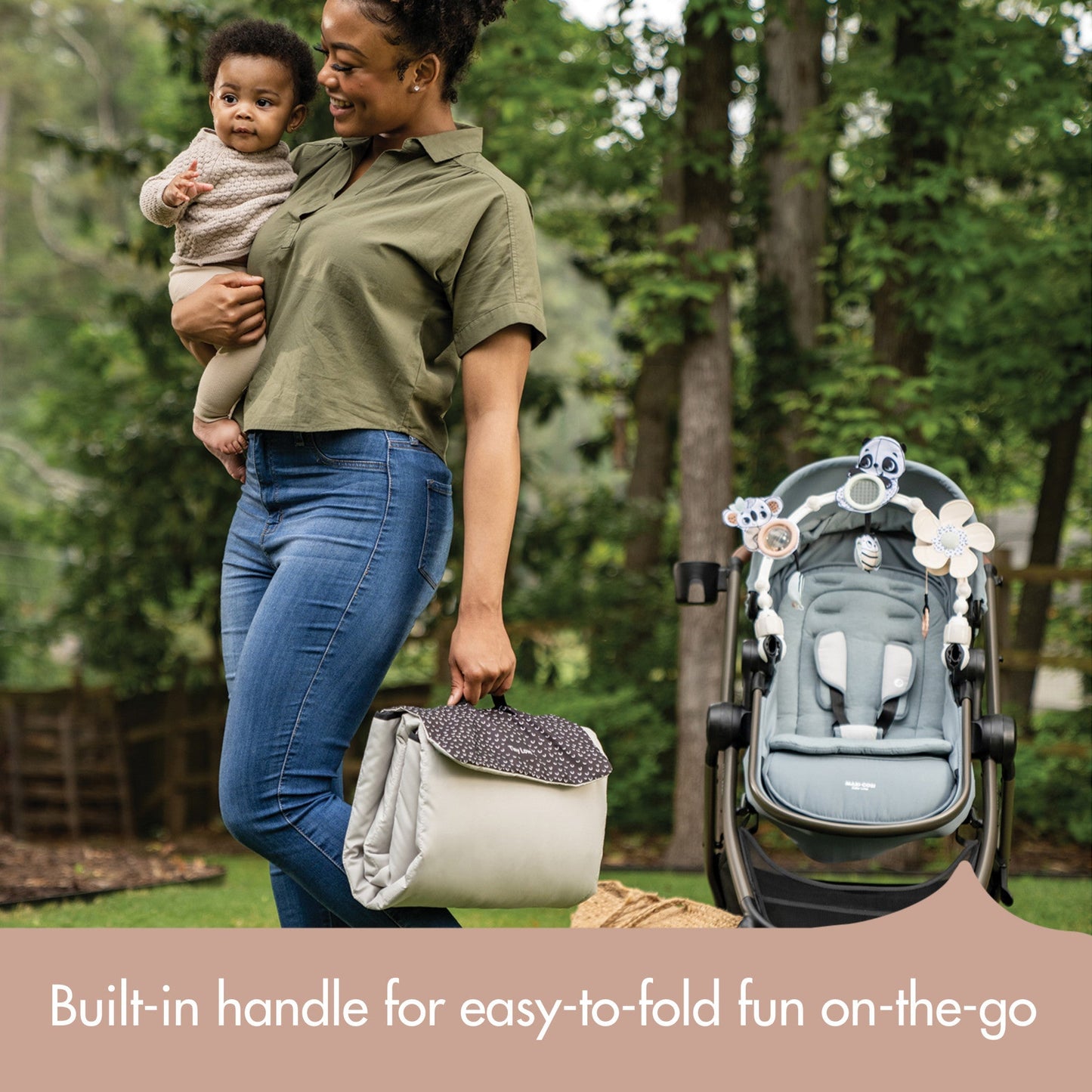 Tiny Love’s Black & White Décor XL Outdoor Mat is a perfect place for tummy time and supports child development with engaging activities. It’s easy to fold and the bottom is water-repellant, making it perfect for families on the go.