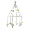 Whimsical hand knit design with little geese and sweet details. Beautiful mobile to be placed over a crib, changing table, or any corner of a room. Balls, feet, and beaks are a lima color.