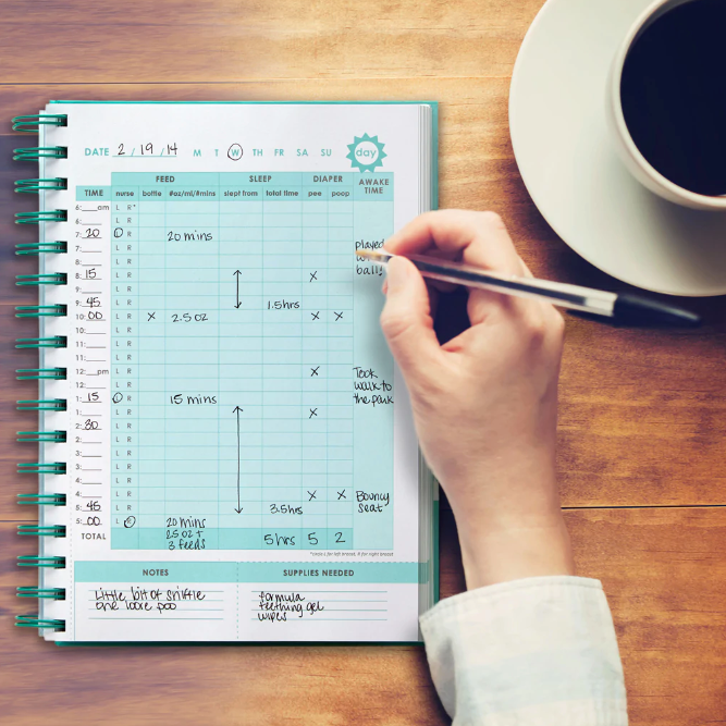 - Daily logbook with 50 easy to fill pages to keep track of your baby's daily schedule