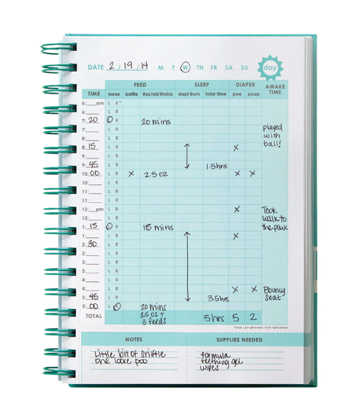 - The 50 page daily log book includes special columns to track feedings, sleep schedules, diaper changing, supplies needed, and special notes.