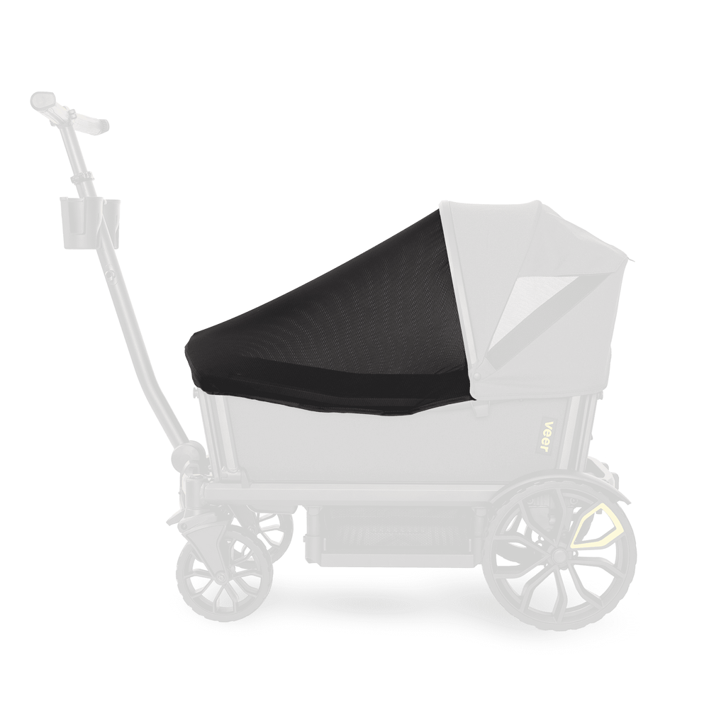The Bug Shield zips to any Veer Retractable Canopy (sold separately) and stretches across top of Cruiser to help keep bugs away from little ones. Use of the bug shield is suitable for one seated passenger. Note that the Bug Shield comes standard with the Nap System.