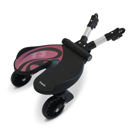 This is the most universal stroller board available. 100% fits any stroller due to its unique build which give you almost endless adjustment possibilities. The arms are adjustable in width, length and height. The quick release clamps allow for easy mounting and removal from your stroller. The platform features a non slip surface and the suspension ensures a smooth ride, even on bumpy roads.