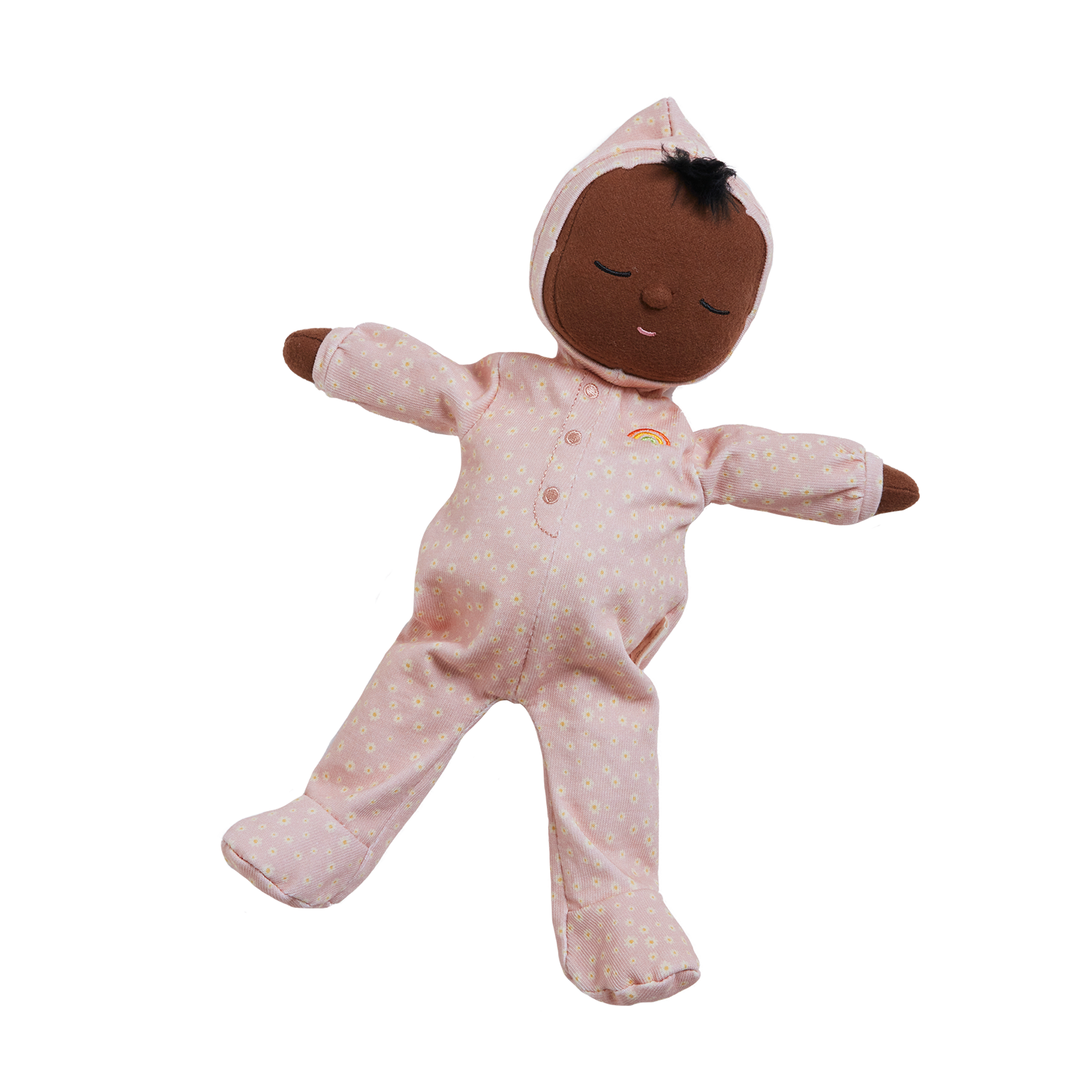Sweetly a slumber and ready to snuggle, say hello to Dozy Dinkum Mini Daisy! This limited-edition Daydream Dozy is made from 100% Cotton printed in our vintage-inspired Daisy print. Soft and precious, Mini Daisy is made for cuddles and play and can’t wait to snooze the days away with you! Mini Daisy is posable, made from super soft cotton and features the sweetest embroidered face with a little tuft of hair. Each Daydream Dozy Dinkum wears a non-removable suit complete with a rainbow right over their heart. Mini Daisy is a beautiful first gift for newborn babies or would make a lovely addition to your Dinkum Doll family for older kids too. Each Daydream Dozy arrives packaged in a soft 100% cotton bag with a matching drawstring! This bag also doubles as a handy laundry bag for your Dozy when they’re in need of a wash (make sure it’s a cool, gentle machine wash only!).