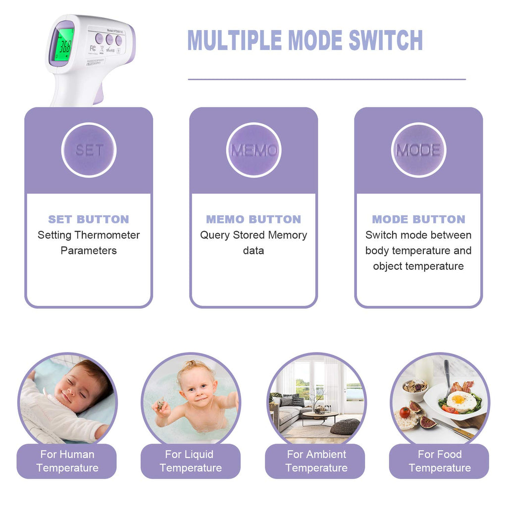 - Non-contact Measurement.Safe for everyone,infrared technology can read information from the forehead without contact, preventing cross infection between multiple people