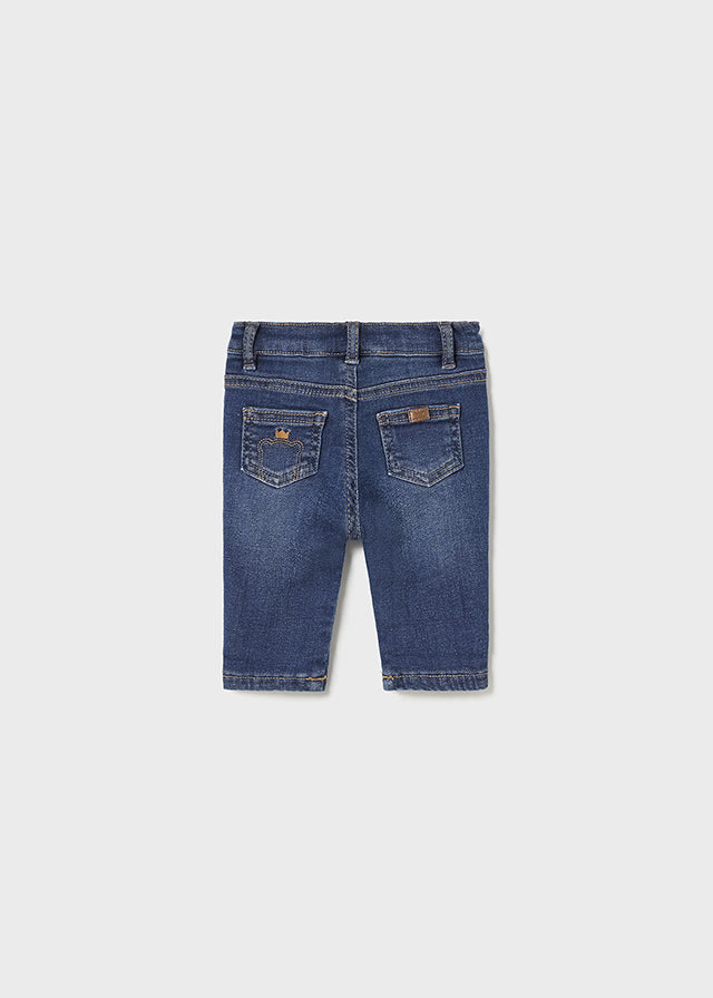 Every little boy needs a great pair of jeans. These stretchy soft cotton premium denim jeans for your handsome little man features an elastic, stretchy waist for easy on and off for those quick diaper changes. A great wash to either "dress up" or for a casually sleek look.