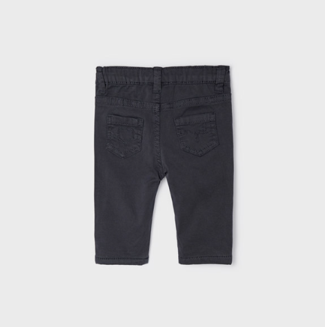 Pants for newborn from our casual line to create a modern, laid-back look. Adjustable elasticated waistband to fit the waistline perfectly. Elasticated waistband with button fastening. Comfortable and resistant twill fabric. Design with mock pockets on the front and functional on the back. Decorative elements: stitched details.
