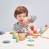 An extensive open-ended play tinker tray box for your little one to sort, stack and arrange their woodland treasures. The lid is removable and can be turned around and used as a chalkboard on which to create your forest floor. The wooden compartments can also be removed and the box filled with sand to create a magical woodland play scene. Set includes: 6 grey flat pebbles, 4 multi-faceted rocks, 3 cone trees, 8 twigs, a snail, a moth, 6 little toadstools, a large toadstool, 10 leaves, 2 acorns, 3 beetles, 4 tunnel pieces, and a bird‘s egg.