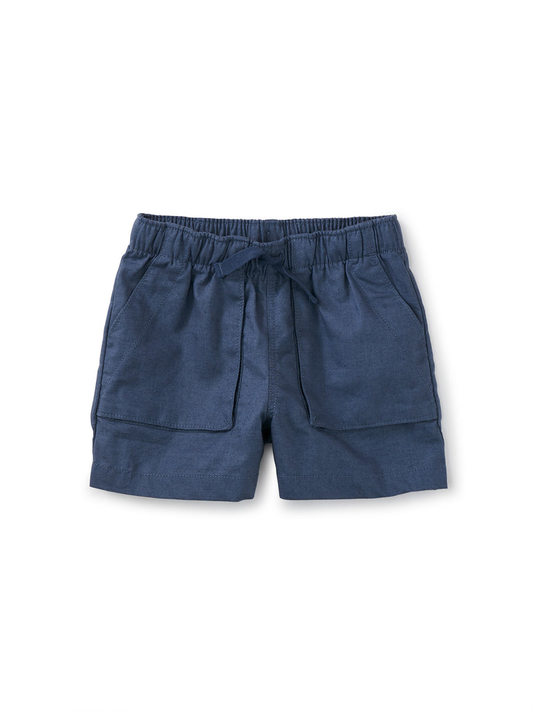 A relaxed fit, drawstring waist, and front slanted pockets amp up the warm-weather appeal of these cotton twill shorts.
