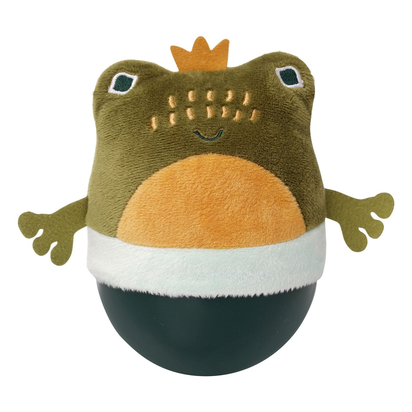 It wobbles, it bobbles and bounces without fail! The Wobbly Bobbly Owl has a one-of-a-kind design that features a weighted soft silicone base for optimal wobbling and bouncing that always bobbles back to an upright position. Its unique silicone base offers a soft squishable texture that's safe for baby play. This silicone design is unlike any other wobble toy on the market. The upper half of this little night owl features plush fabric with embroidered facial features and a bell inside for added enjoyment. Encourages cause and effect learning and motor development.